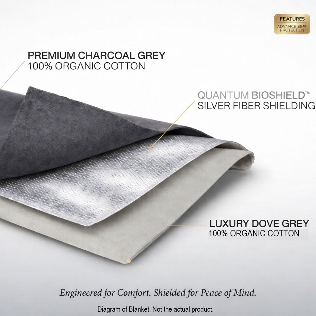 This is not just a blanket. Beneath the soft Premium Cotton exterior is a silver-fiber Faraday layer that helps reduce everyday EMF exposure from WiFi, Bluetooth, 5G and other common devices. It gives you extra peace of mind while you relax, sleep, or work.